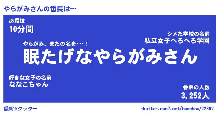 | 意味不明あだ名 | 『ペロリンやらがみ』『永久保存やらがみ』 |