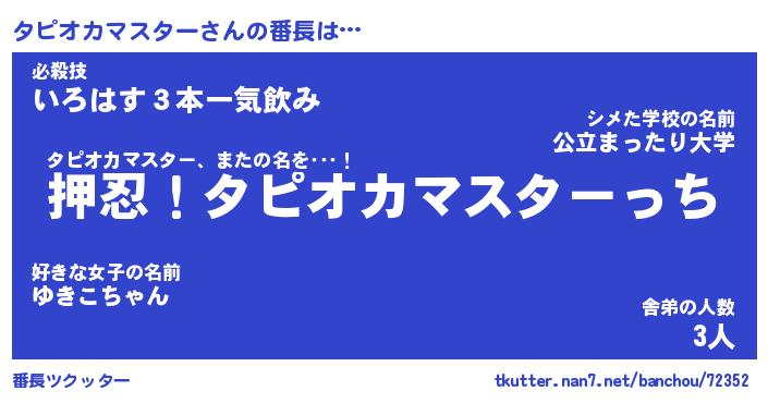 | ヒーロー風カッコイイあだ名 | 『スーパータピオカマスター』 |