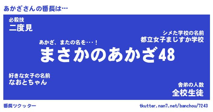 | 意味不明あだ名 | 『ペロリンあかざ』『あかざフォーエバー』 |