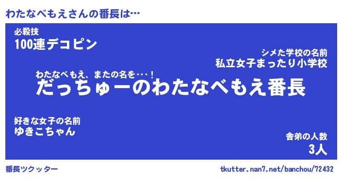 | 伝説のあだ名 | 『伝説のスナイパーわたなべもえ』 |