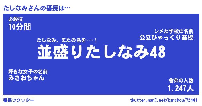 | 意味不明あだ名 | 『ペロリンたしなみ』『永久保存たしなみ』 |