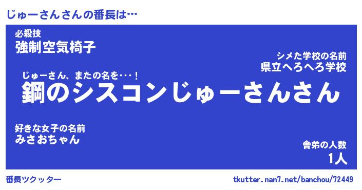 | 伝説のあだ名 | 『封印されしスナイパーじゅーさん』 |