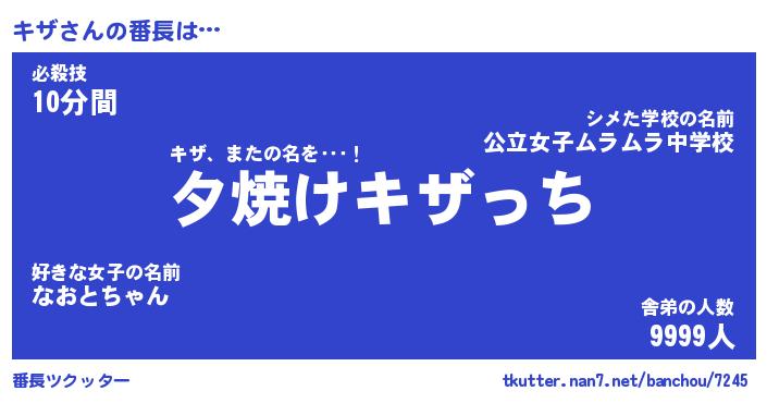 | ヒーロー風カッコイイあだ名 | 『スーパーキザ』『ウルトラキザマン』 |