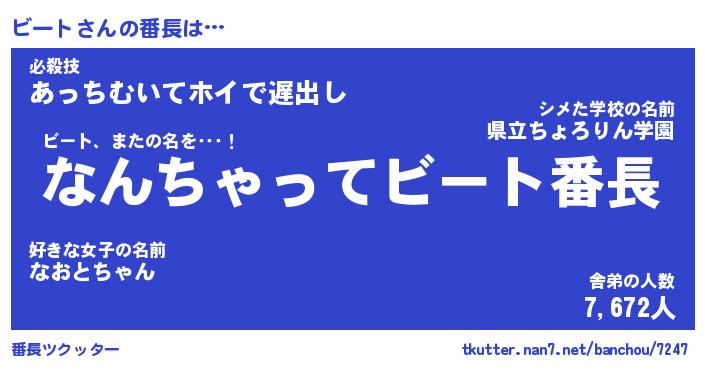 | 意味不明あだ名 | 『ペロリンビート』『ビートフォーエバー』 |