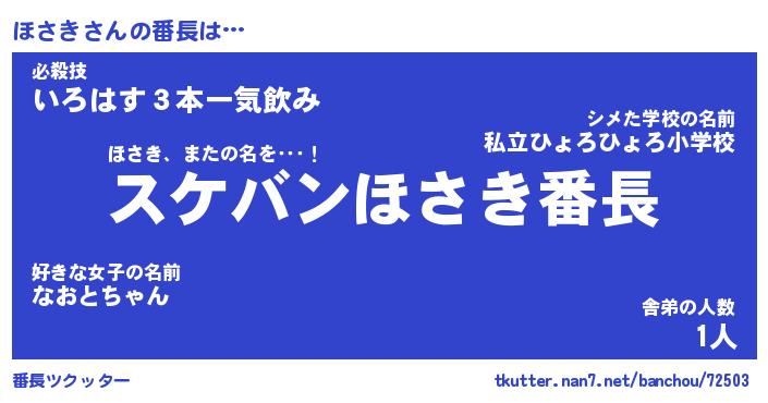 | ヒーロー風カッコイイあだ名 | 『スーパーホサキ』『ウルトラほさきマン』 |