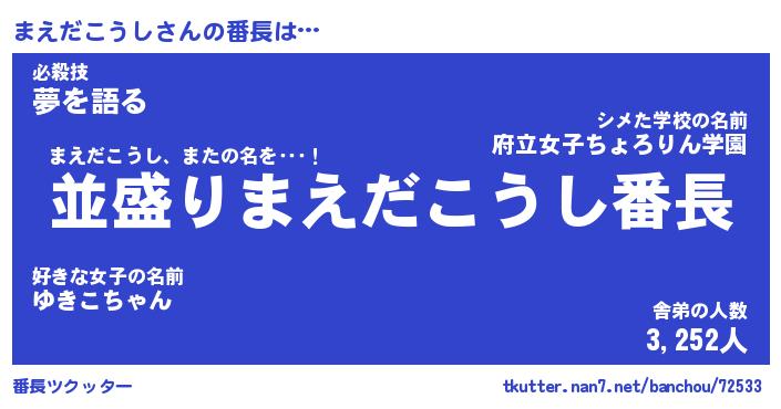 | 肩書あだ名 | 『まえだこうし社長』『まえだこうし班長』 |