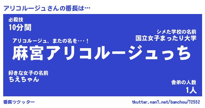 | ヒーロー風カッコイイあだ名 | 『スーパーアリコルージュ』 |