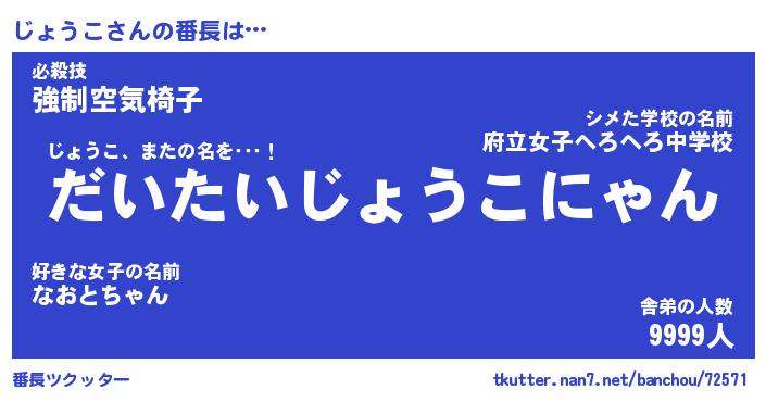 | 肩書あだ名 | 『じょうこ社長令嬢』『じょうこ総理大臣』 |