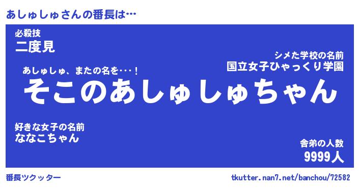 | ファンタジー風あだ名 | 『アシフェル』『エターナルアシュシュー』 |