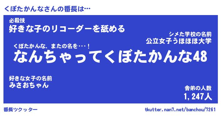 | 肩書あだ名 | 『くぼたかんな御曹司』 |