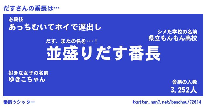| 男性向けラノベタイトル風あだ名 | 『だすの憂鬱』 |