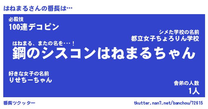 ヘコむあだ名 | 『はねにゅー』『つくし』『はねを』 |