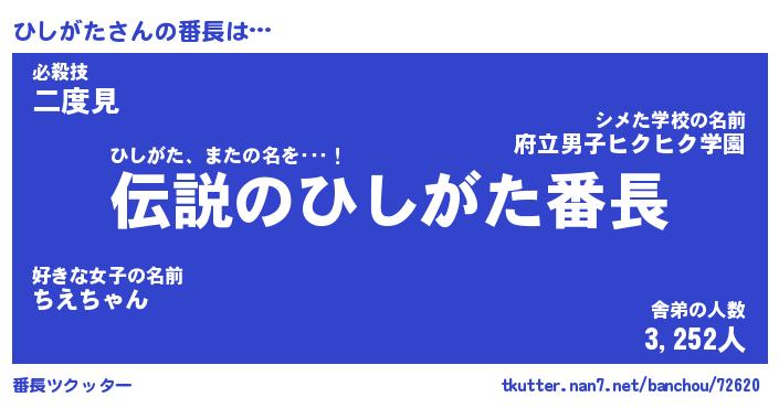 | ヒーロー風カッコイイあだ名 | 『スーパーヒシガタ』『炎刃騎士ヒシ』 |