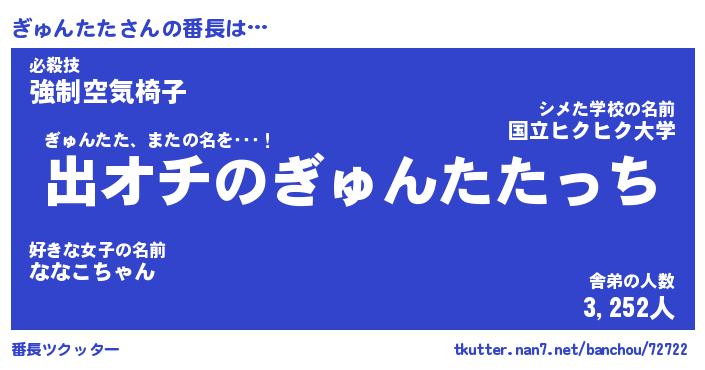 | 男性向けラノベタイトル風あだ名 | 『ぎゅんたたの憂鬱』 |