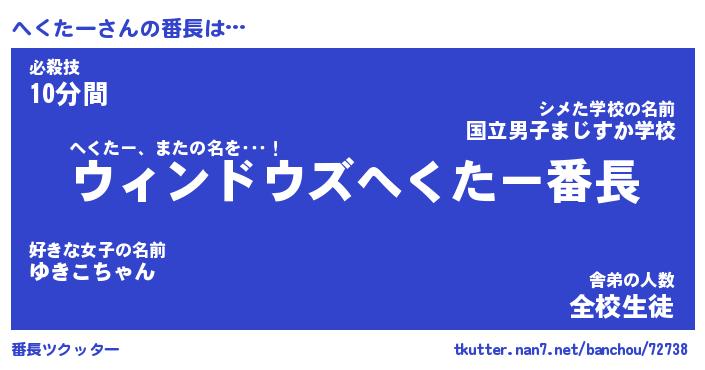 | 意味不明あだ名 | 『ペロリンへくたー』『永久保存へくたー』 |