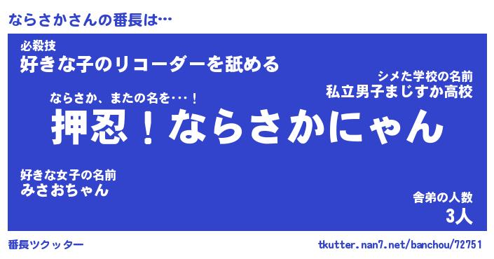 | 意味不明あだ名 | 『ペロリンならさか』『永久保存ならさか』 |