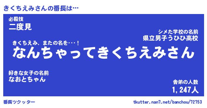 | ヒーロー風カッコイイあだ名 | 『スーパーキクチエミ』『銀牙騎士キク』 |