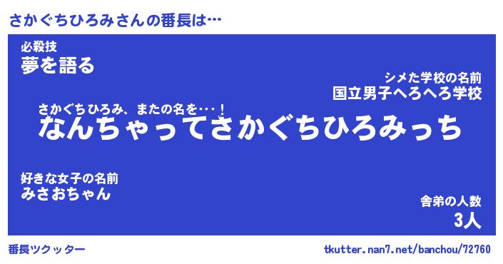 | ヒーロー風カッコイイあだ名 | 『スーパーサカグチヒロミ』 |