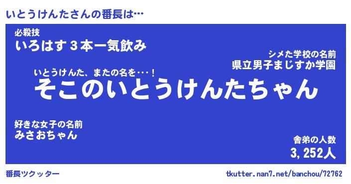 | ヒーロー風カッコイイあだ名 | 『スーパーイトウケンタ』『銀牙騎士イト』 |