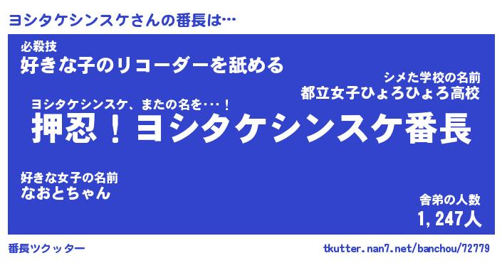 | ポケモン風あだ名 | 『ヨシチュウ』『ヨシタダネ』 |