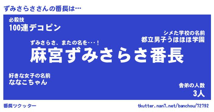 | ヒーロー風カッコイイあだ名 | 『スーパーズミサラサ』『黄金騎士ズミ』 |