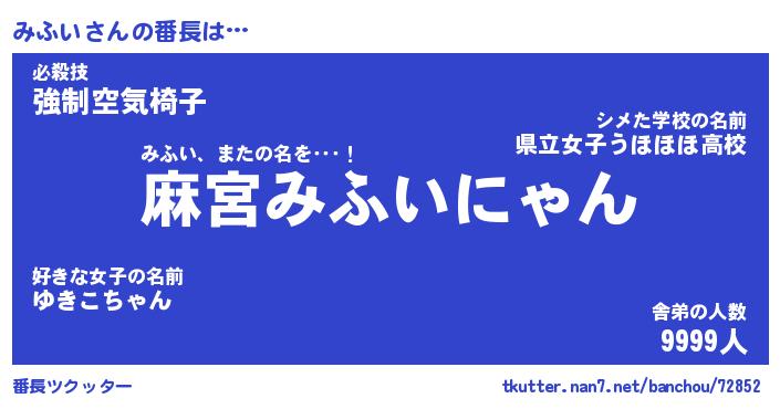 | ヒーロー風カッコイイあだ名 | 『スーパーミフイ』『ウルトラみふいマン』 |