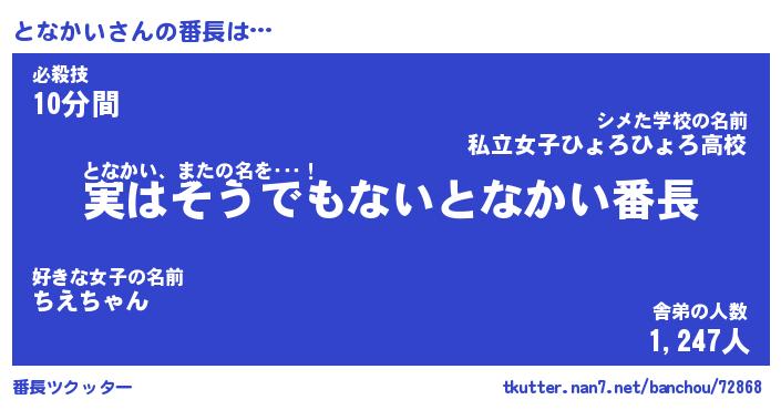 | ヘコむあだ名 | 『となにゅー』『牛乳』『となぷりん』 |