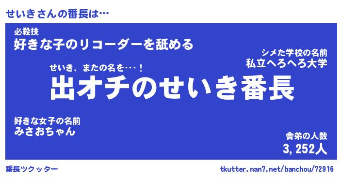 | ヒーロー風カッコイイあだ名 | 『スーパーセイキ』『ウルトラせいきマン』 |