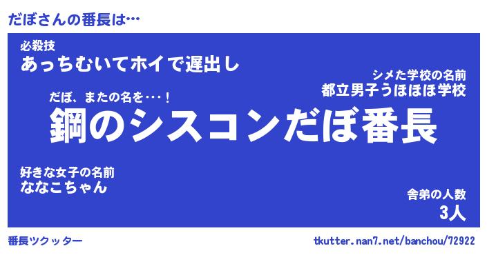 | ヘコむあだ名 | 『だぼもー』『つくし』『だぼぷりん』 |