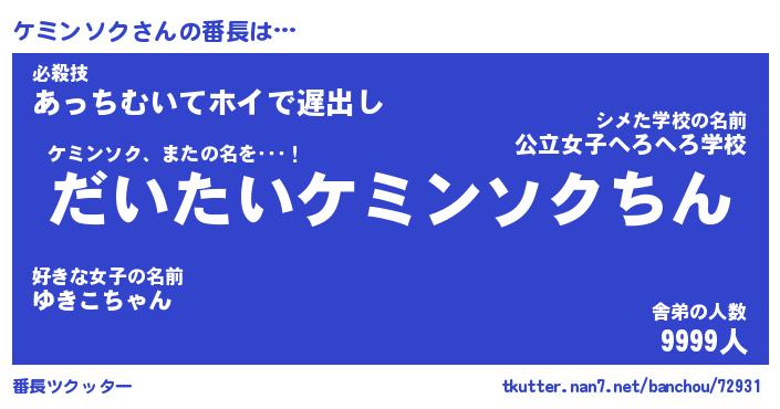 | 肩書あだ名 | 『ケミンソク店長』『ケミンソク大統領』 |