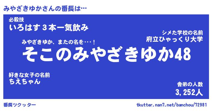 | 恥ずかしいあだ名 | 『プリティーみやざきゆか』『みやっちょ』 |