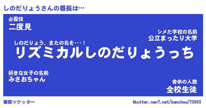 | 肩書あだ名 | 『しのだりょうCEO』『しのだりょう副担任』 |