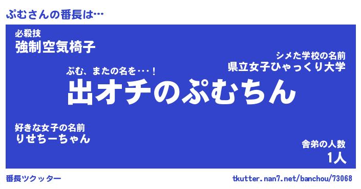 | ヘコむあだ名 | 『ぷむにー』『牛乳』『ぷむ太郎』 |
