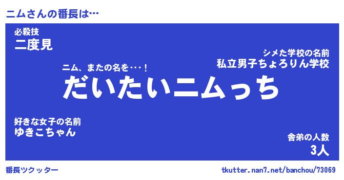 | 2回繰り返すあだ名 | 『ニムニム』『ニニムム』『ぬれぬれ』 |