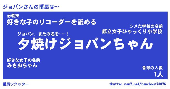 | 意味不明あだ名 | 『ペロリンジョバン』『永久保存ジョバン』 |