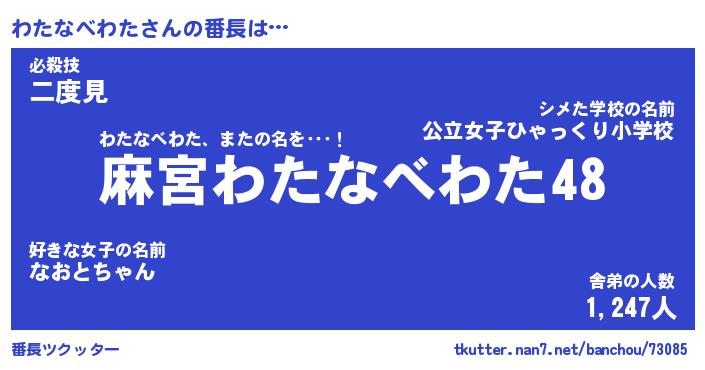| ヒーロー風カッコイイあだ名 | 『スーパーワタナベワタ』『炎刃騎士ワタ』 |