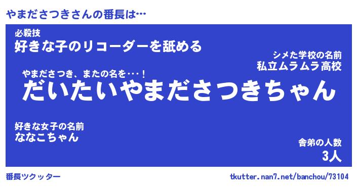 | ヒーロー風カッコイイあだ名 | 『スーパーヤマダサツキ』『炎刃騎士ヤマ』 |