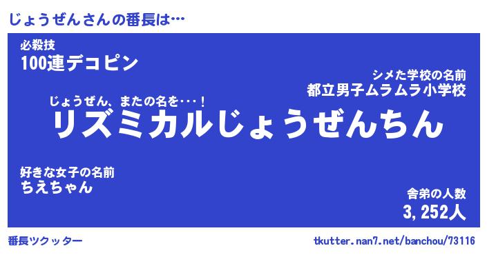| 肩書あだ名 | 『じょうぜん店長』『じょうぜん国家主席』 |