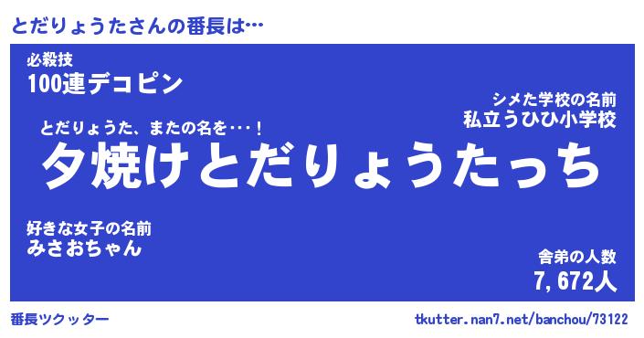 | 伝説のあだ名 | 『封印されしスナイパーとだりょうた』 |