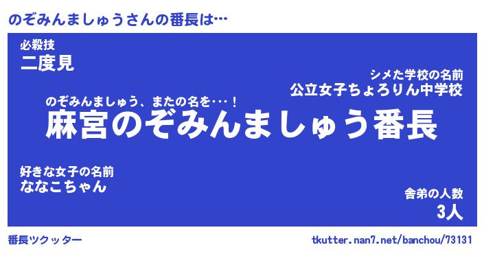 | ヒーロー風カッコイイあだ名 | 『スーパーノゾミンマシュウ』 |