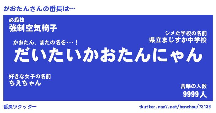 | ヒーロー風カッコイイあだ名 | 『スーパーカオタン』『幻影騎士カオ』 |