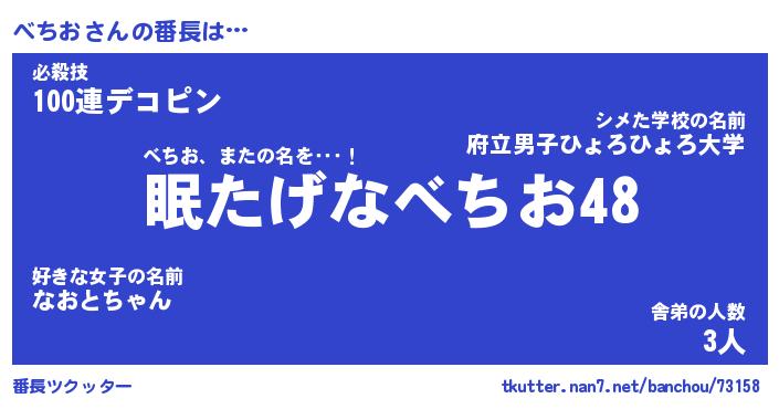| 意味不明あだ名 | 『ペロリンべちお』『べちおフォーエバー』 |