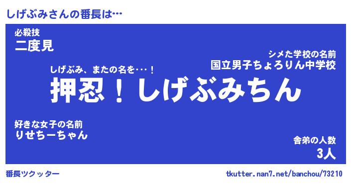 | 意味不明あだ名 | 『ペロリンしげぶみ』『永久保存しげぶみ』 |