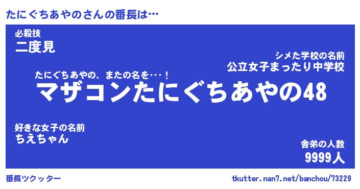 | 肩書あだ名 | 『たにぐちあやの社長令嬢』 |