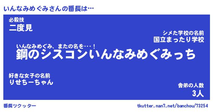 | 伝説のあだ名 | 『封印されしスナイパーいんなみめぐみ』 |