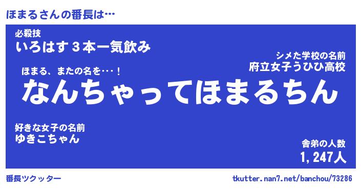 | ヘコむあだ名 | 『ほまにー』『なまこ酢』『ほま太郎』 |