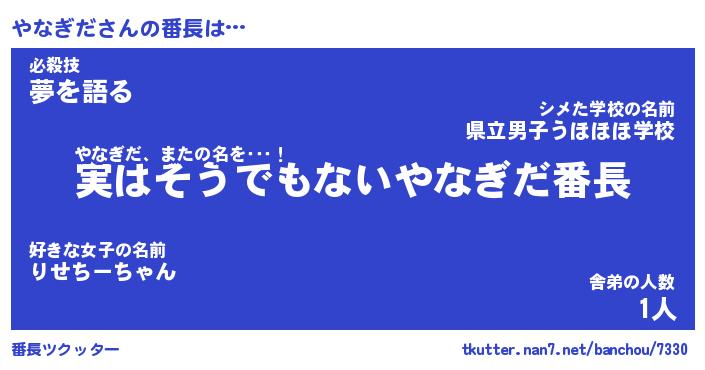 | ヘコむあだ名 | 『やなふぇ~』『なまこ酢』 |