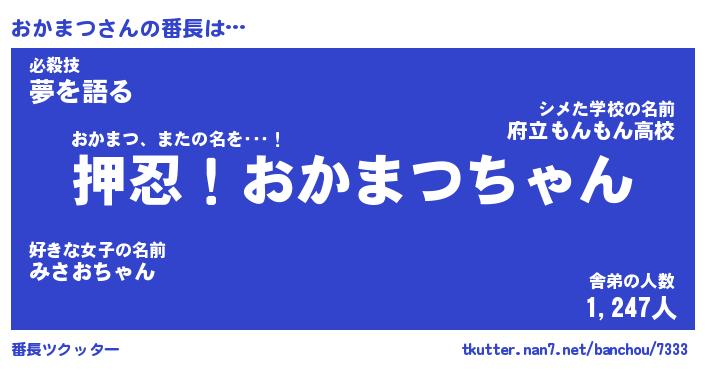| 意味不明あだ名 | 『ペロリンおかまつ』『永久保存おかまつ』 |