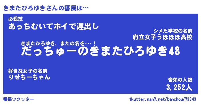 | 恥ずかしいあだ名 | 『プリティーきまたひろゆき』『きまちん』 |