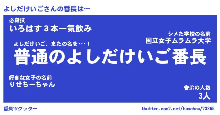 | ヒーロー風カッコイイあだ名 | 『スーパーヨシダケイゴ』『魔戒騎士ヨシ』 |